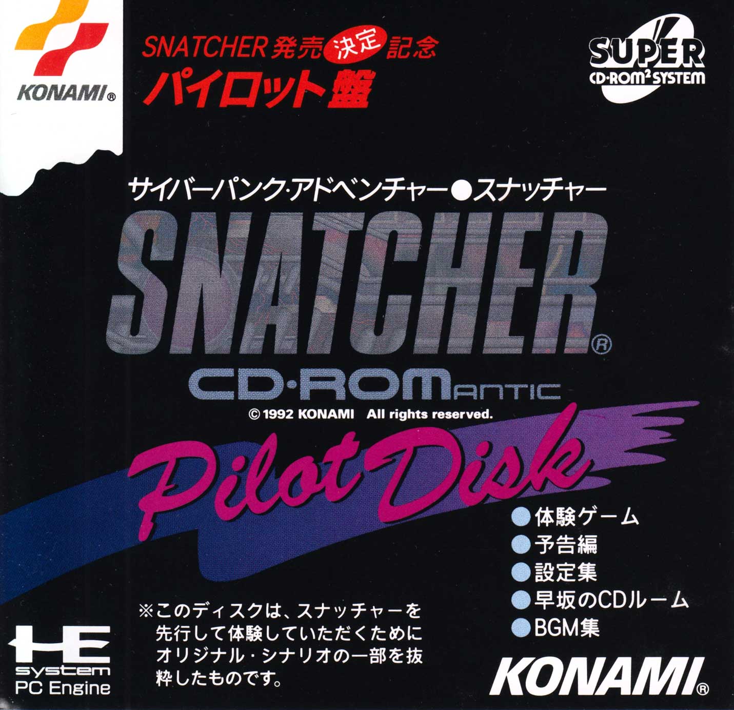 [PCE-CD] 스내처 CD 로맨틱 파일럿 디스크 / Snatcher CD-ROMantic Pilot Disk / 일본판