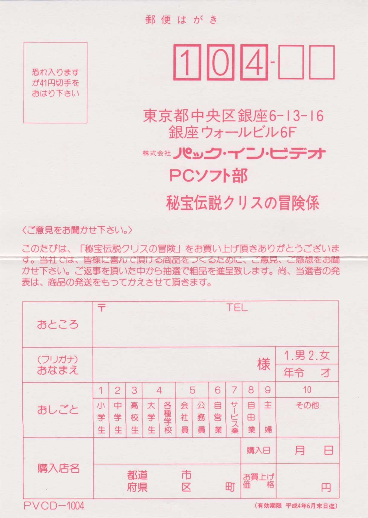[PCE-CD] 비보전설 - 크리스의 모험 / Hihou Densetsu - Chris no Bouken / 일본판