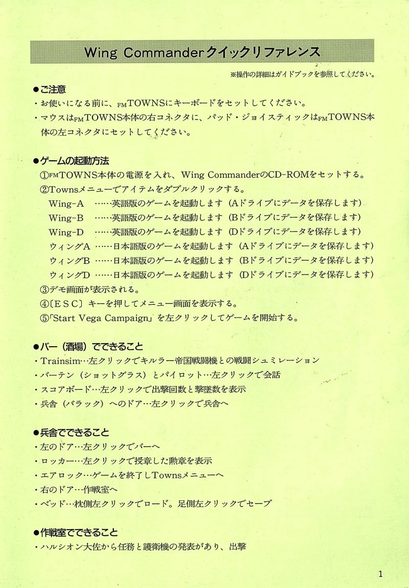 [FM-Towns] 윙 커맨더 / Wing Commander / 일본판