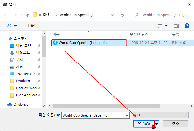 | 아래 화면과 같이 시디 이미지가 있는 폴더로 찾아가 *.bin 파일을 선택 후 열기를 클릭 합니다. |