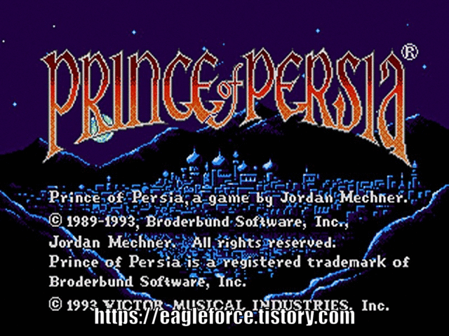 | 실행기(에뮬레이터)는 및 설명은 아래 클릭 이동후 받으실수 있습니다. Kega Fusion v3.64 한글판 eagleforce.tistory.com/2373 프린스 오브 페르시아 (페르시아 왕자) Prince of Persia 북미판 / 1992 / 액션 Bits Laboratory, Broderbund |