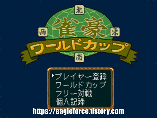 | 실행기(에뮬레이터)는 및 설명은 아래 클릭 이동후 받으실수 있습니다. Kega Fusion v3.64 한글판 eagleforce.tistory.com/2373 작호 월드컵 (雀豪 ワールドカップ) Jangou World Cup 일본판 / 1993 / 보드 Victor |
