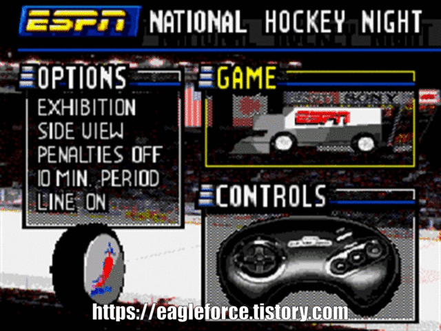 | 실행기(에뮬레이터)는 및 설명은 아래 클릭 이동후 받으실수 있습니다. Kega Fusion v3.64 한글판 eagleforce.tistory.com/2373 ESPN 내셔날 하키 나이트 ESPN National Hockey Night 북미판 / 1994 / 스포츠 Park Place Productions |