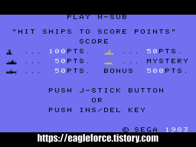 | 실행기(에뮬레이터) 다운로드및 설명은 아래를 클릭해 주세요. Kega Fusion v3.64 한글판 eagleforce.tistory.com/2373 BizHawk v2.6 (멀티 에뮬레이터) eagleforce.tistory.com/2635 BlueMSX 에서 SEGA SG-1000, SEGA SC-3000 구동 하기 설명 eagleforce.tistory.com/3063 N-서브 N-サブ N-Sub 1983 / 슈팅 Compile |