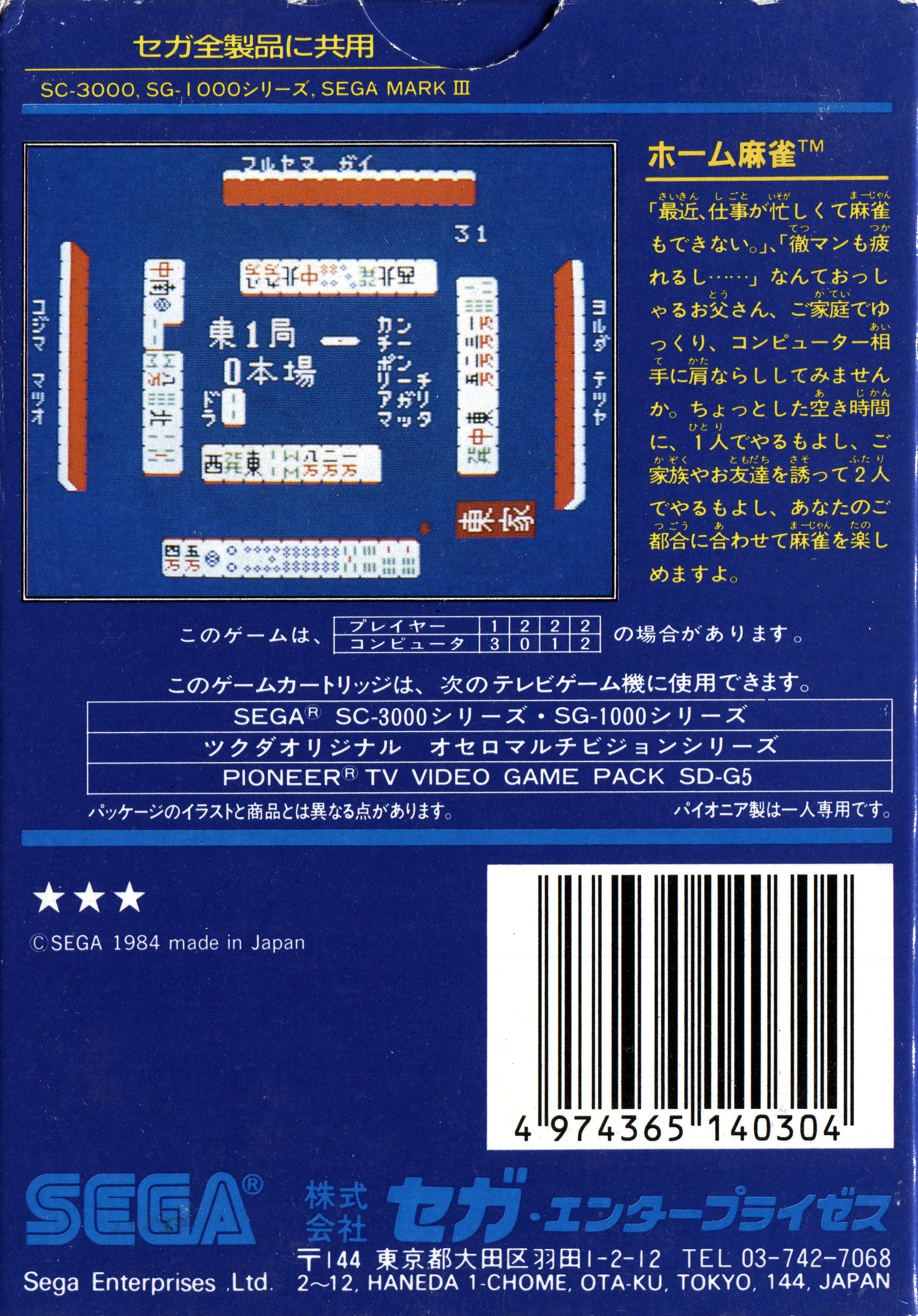 [SG-1000] 홈 마작 / ホーム 麻雀 / Home Mahjong