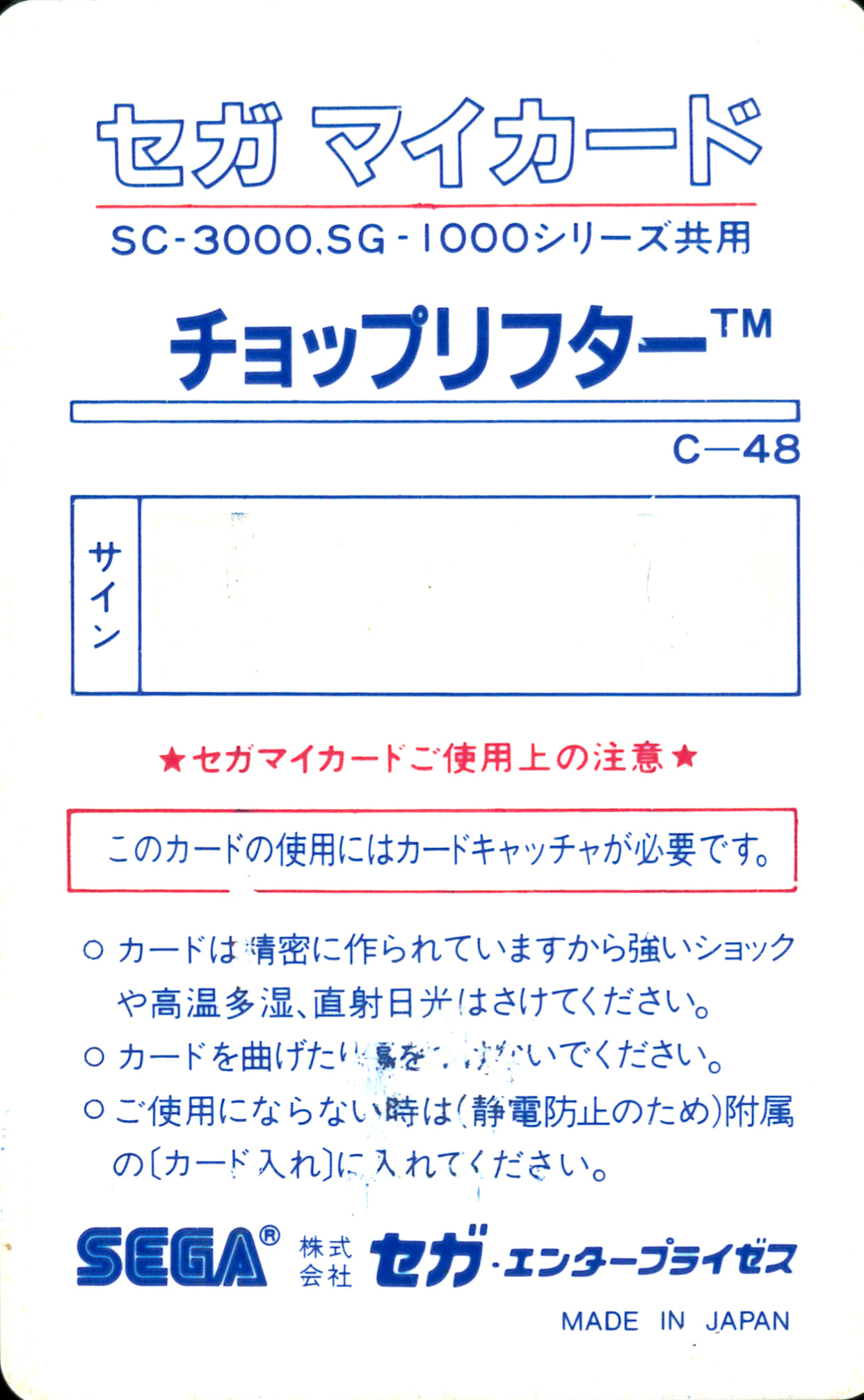 [SG-1000] 촙리프터 / チョップリフター / Choplifter