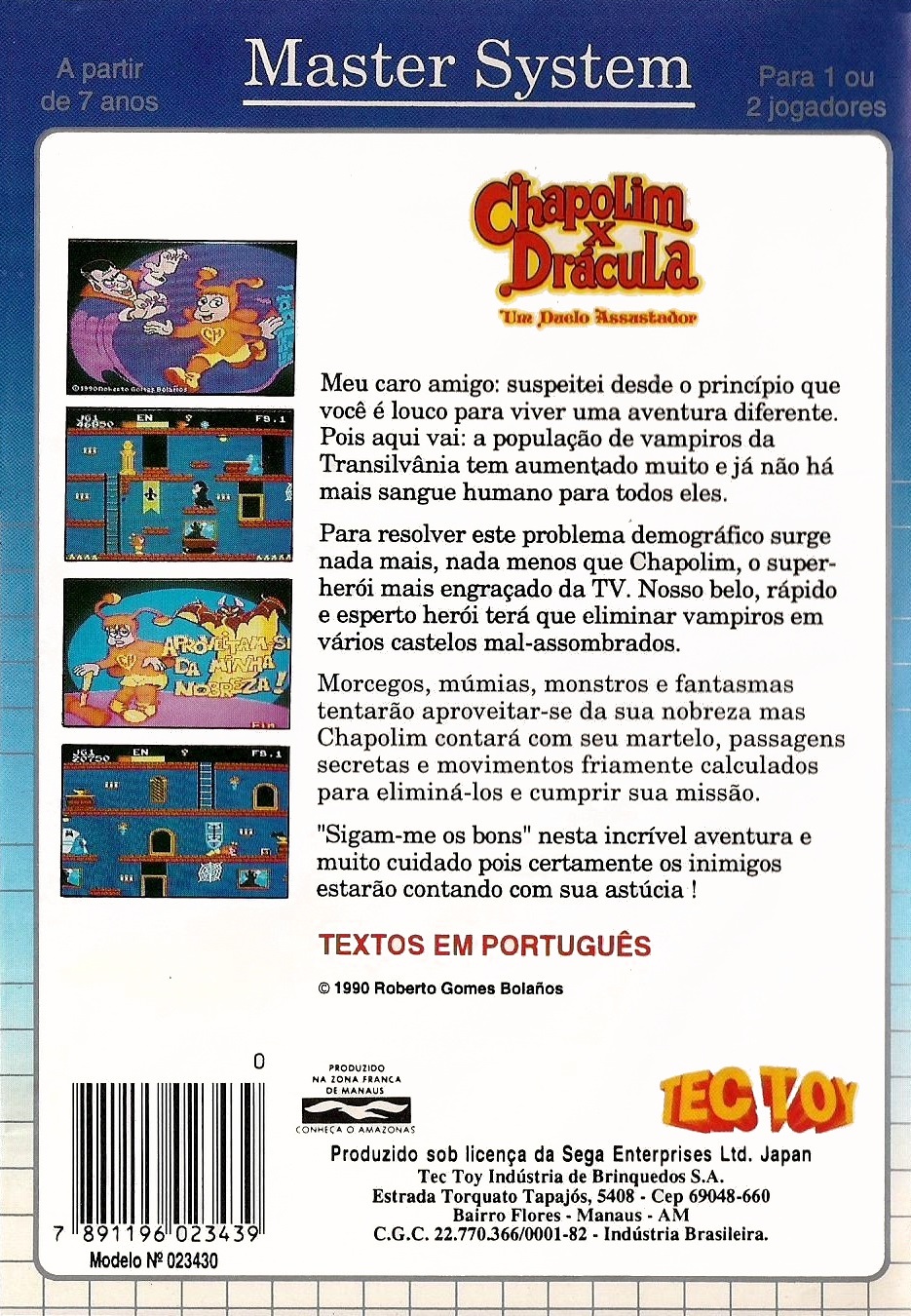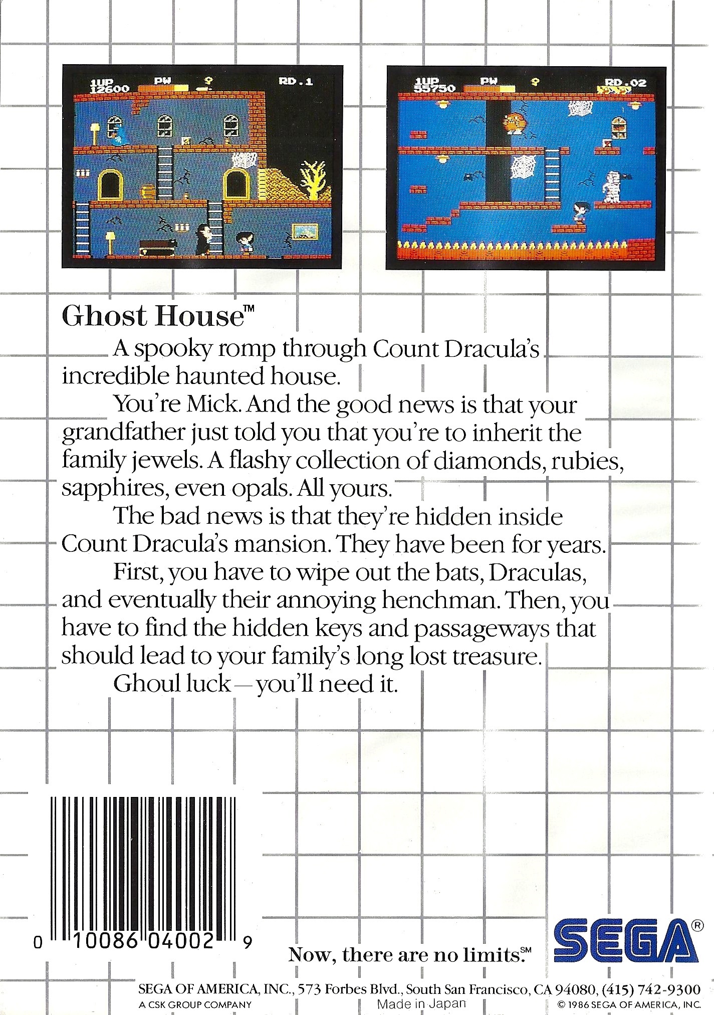 | 실행기(에뮬레이터) 다운로드및 설명은 아래를 클릭해 주세요. Kega Fusion v3.64 한글판 eagleforce.tistory.com/2373 BizHawk v2.6 (멀티 에뮬레이터) eagleforce.tistory.com/2635 유령의 집 / 고스트 하우스 ゴーストハウス Ghost House / Chapolim x Dracula - Um Duelo Assustador 1986 / 액션 SEGA |