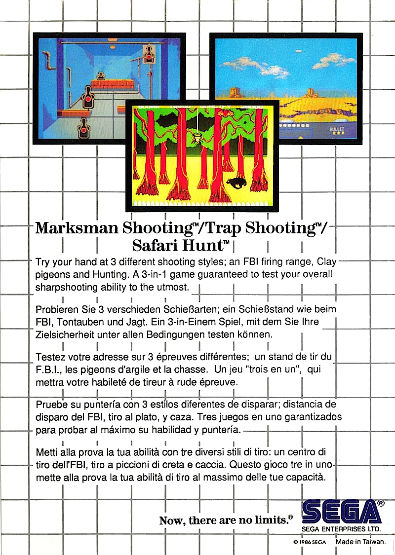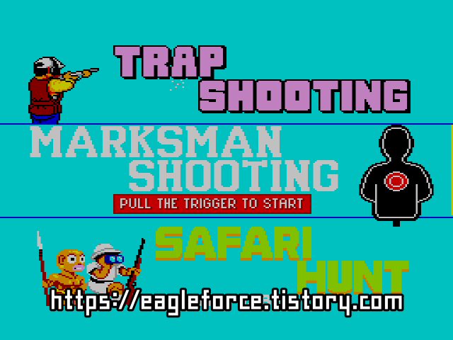 | 실행기(에뮬레이터) 다운로드및 설명은 아래를 클릭해 주세요. Kega Fusion v3.64 한글판 eagleforce.tistory.com/2373 BizHawk v2.6 (멀티 에뮬레이터) eagleforce.tistory.com/2635 마크스맨 슈팅 & 트랩 슈팅 & 사파리 헌트 Marksman Shooting & Trap Shooting & Safari Hunt 1987 / 건 슈팅 SEGA |