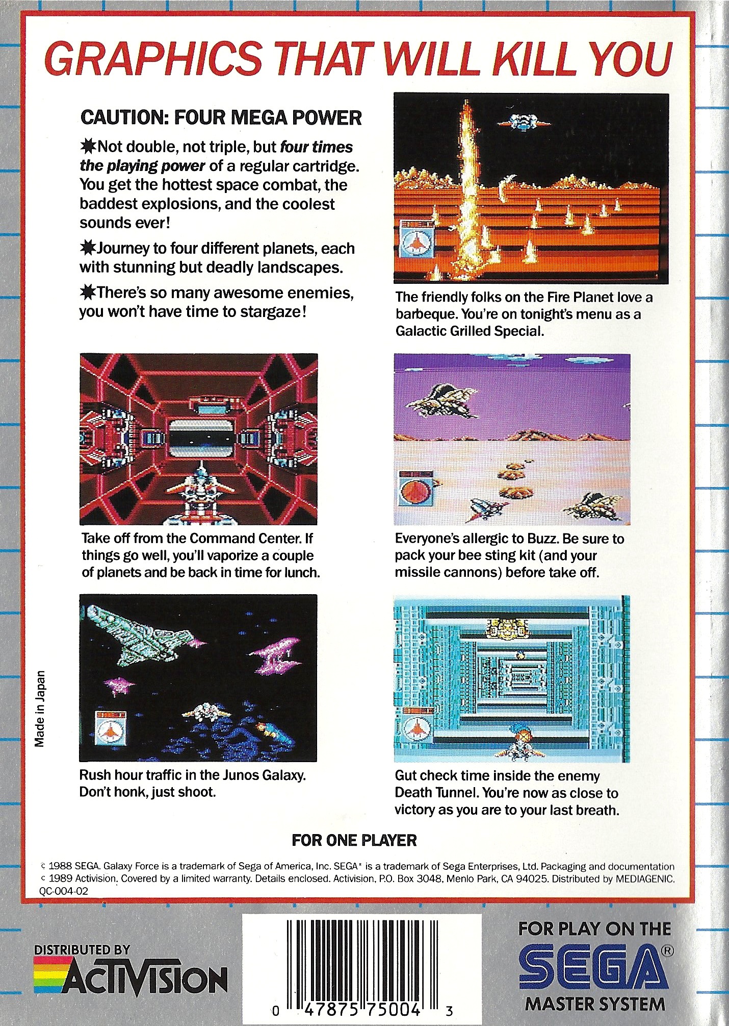 | 실행기(에뮬레이터) 다운로드및 설명은 아래를 클릭해 주세요. Kega Fusion v3.64 한글판 eagleforce.tistory.com/2373 BizHawk v2.6 (멀티 에뮬레이터) eagleforce.tistory.com/2635 갤럭시 포스 Galaxy Force 1989 / 슈팅 SEGA |