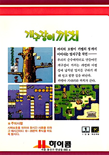| 실행기(에뮬레이터) 다운로드및 설명은 아래를 클릭해 주세요. Kega Fusion v3.64 한글판 eagleforce.tistory.com/2373 BizHawk v2.6 (멀티 에뮬레이터) eagleforce.tistory.com/2635 개구장이 까치 Gaegujangi Ggachi 1993 / 액션 HiCom |