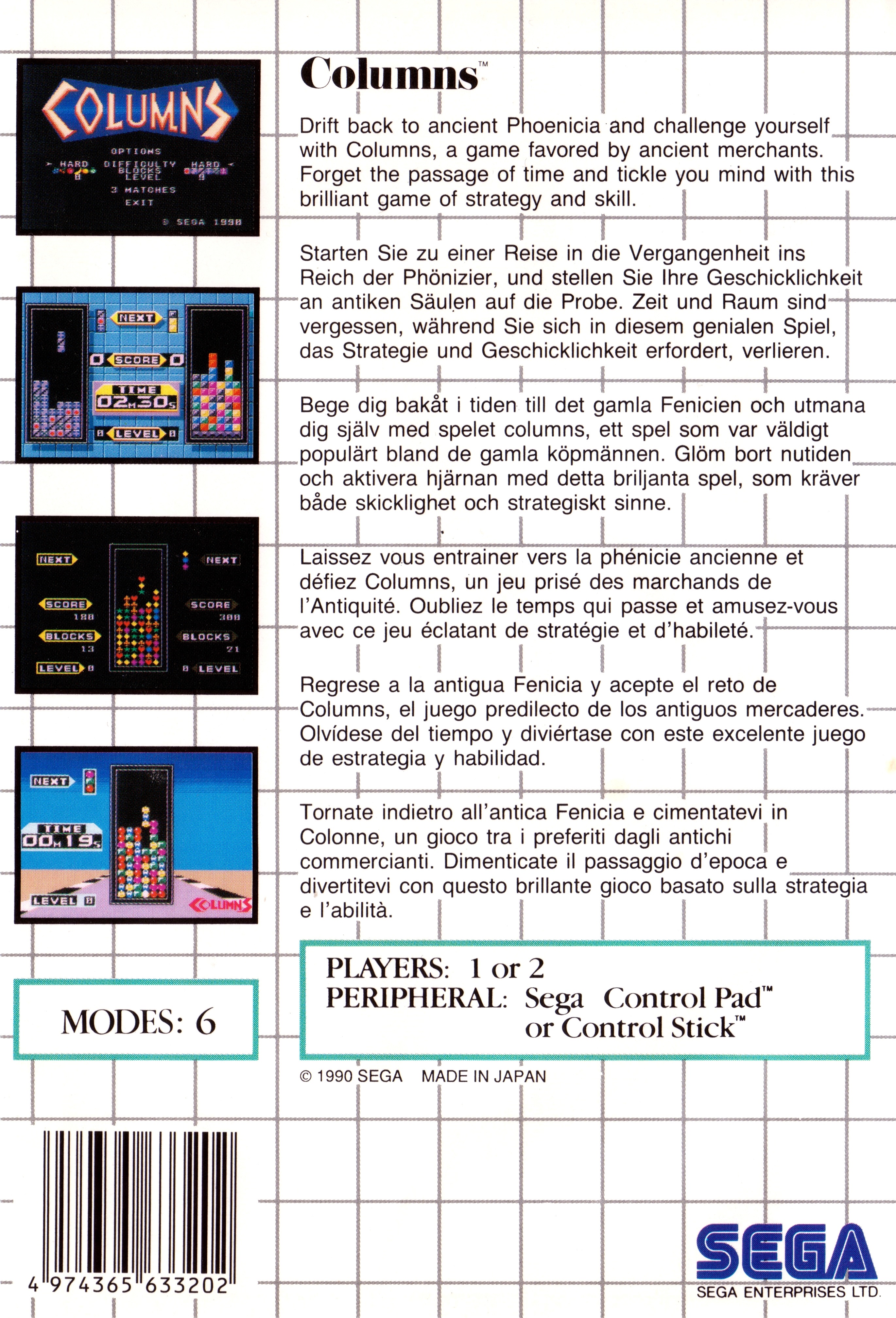 | 실행기(에뮬레이터) 다운로드및 설명은 아래를 클릭해 주세요. Kega Fusion v3.64 한글판 eagleforce.tistory.com/2373 BizHawk v2.6 (멀티 에뮬레이터) eagleforce.tistory.com/2635 컬럼스: 쉐이프스 앤 컬럼스 Columns ~ Shapes and Columns 1990 / 퍼즐 SEGA |