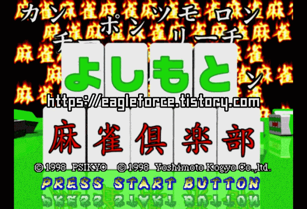 | 실행기(에뮬레이터)는 및 설명은 아래 클릭 이동후 받으실수 있습니다. BizHawk 2.6.x64 (추천)(멀티 실행기) eagleforce.tistory.com/2635 SSF v0.1.2.b4 한글판 eagleforce.tistory.com/3553 Yabause v0.9.15.x64 한글판 eagleforce.tistory.com/3552 요시모토 마작 클럽 よしもと麻雀倶楽部 Yoshimoto Mahjong Club 일본판 / 1998 / 마작 Yoshimoto Kogyo |