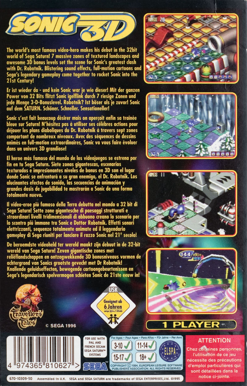 [Saturn] 소닉 3D 플릭키스 아일랜드 / Sonic 3D: Flickies' Island / 유럽판
