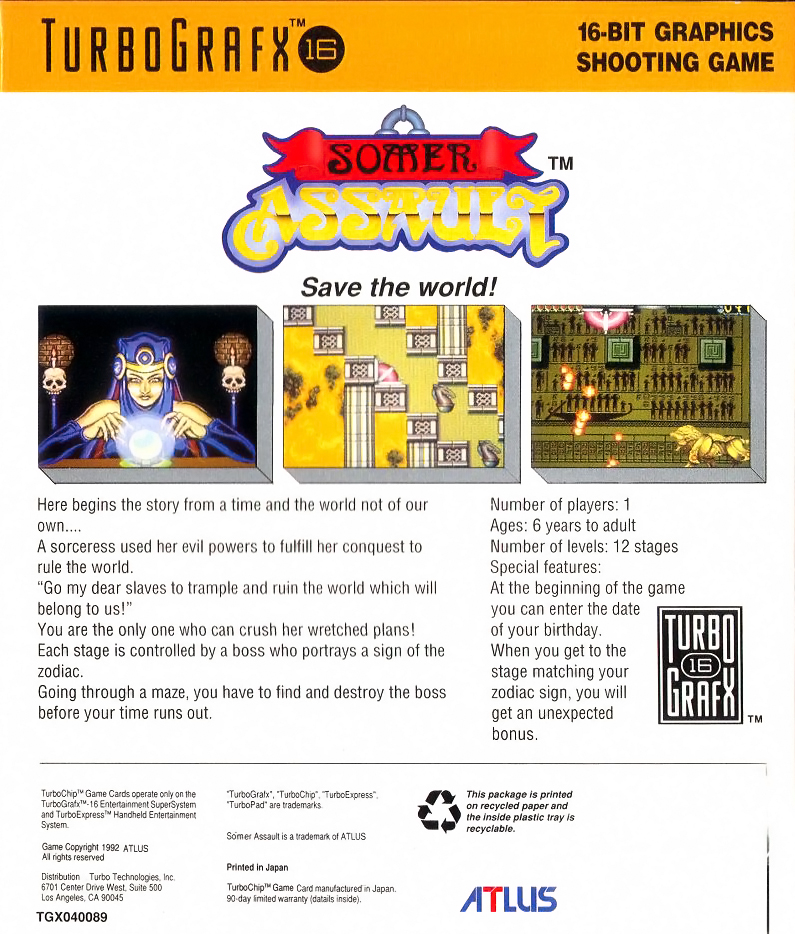| 발매 / 장르 / 제작 | 1991 / 액션, 슈팅 / Atlus,Turbo Technologies | ||||||||