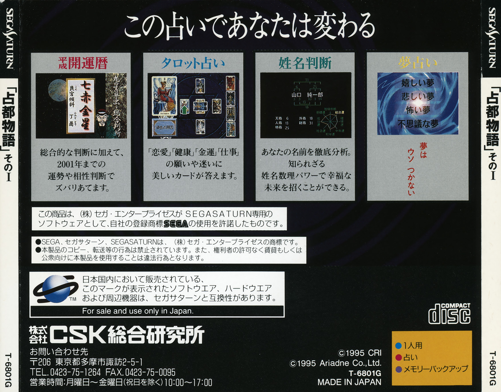 [Saturn] 점도물어 / 占都物語 そのⅠ / Sento Monogatari Sono I - 일본판