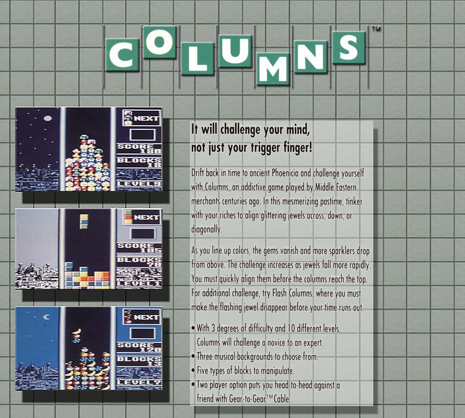 | 발매 / 장르 / 제작 | 1990 / 퍼즐 / Sega | ||||||||
