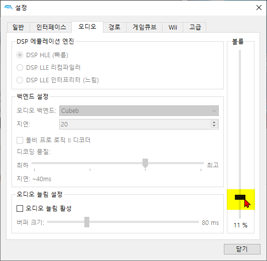 실행기에서 옵션 > 오디오 설정을 클릭합니다. ![]() 우측의 볼륨 항목으로 메인 볼륨을 조절 할수 있습니다. ![]() |