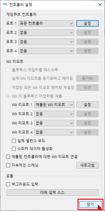 | 게임 큐브 컨트롤러 설정 실행기에서 컨트롤러를 클릭 합니다. ![]()