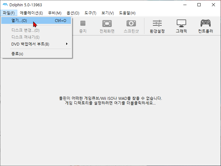 | 지원 확장자 닌텐도 게임큐브, 닌텐도 위 시스템용 .iso .elf .wad .dol .gcm .tgc .wbfs .ciso .gcz .wia .rvz .dff .m3u 를 지원 합니다. 드러그 앤 드롭지원으로 실행기에 파일을 드러그앤 드롭으로 실행기 가능 합니다. 실행기 메뉴 에서 파일 > 열기를 클릭 합니다. ![]() 파일 위치 이동후 롬파일 선택후 열기를 클릭 하면 해당 게임이 실행 됩니다. ![]() |